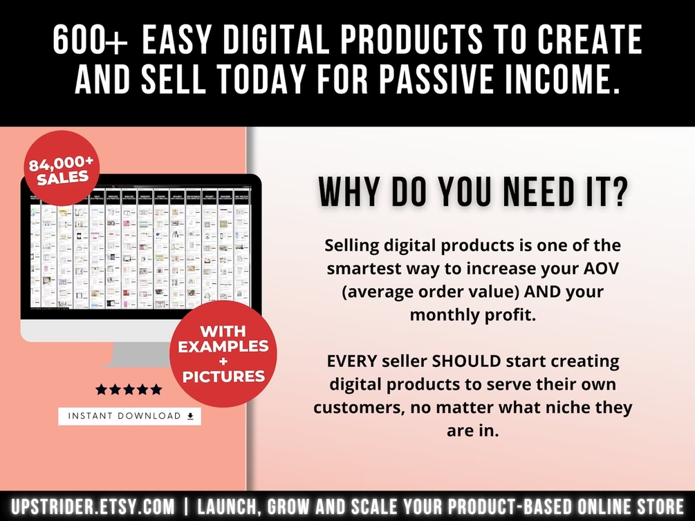 Selling digital products is one of the smartest ways to increase your AOV (average order value) AND your monthly profit. EVERY seller SHOULD start creating digital products to serve their own niche, no matter what it is. Etsy is growing very quickly and the e-commerce industry is expected to grow by almost $11 trillion between 2021 and 2025! With the ever-increasing number of sellers on the platform, your products and your Etsy Shop can easily get lost among your competitors. After being able to bring my 2 brands to £1m+ each, I'm now sharing what I've learned, tried and experienced in this flashcard. Easy, straight-to the point and actionable steps to work on to skyrocket your sales.