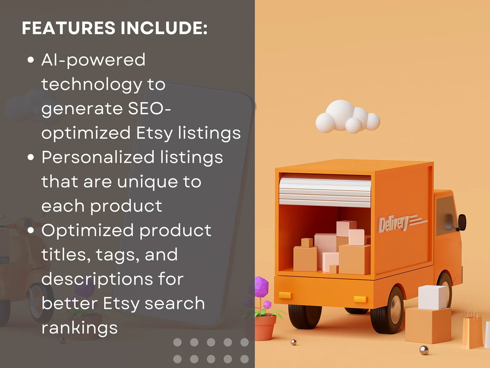 Looking to boost your Etsy sales? Our AI-powered ChatGPT Etsy Listing Generator creates SEO-optimized product listings for Etsy business owners. Say goodbye to tedious copywriting and let our tool do the work for you! Simply input your product details and watch as ChatGPT generates high-quality, personalized descriptions, titles, and tags that will improve your Etsy search rankings and attract more potential customers. Try it now and see your Etsy business thrive!